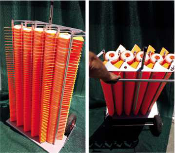 Transport trolley for recharging. Capacity for 250 helices