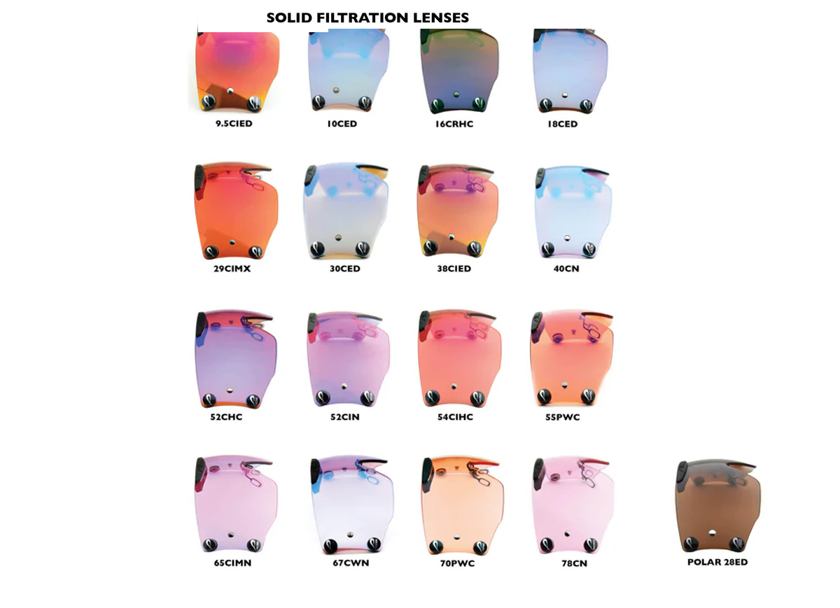 This new High Performance Carbon Fiber Temple system and integrated rubber sweat bar have enhanced the fit and utility of the Panther Systems. The soft rubber sweat bar allows a better exhausting of air on the back side of the lens while providing a comfortable wearing experience against the forehead. The Carbon Fiber fork temple system is light weight and provides excellent grip.