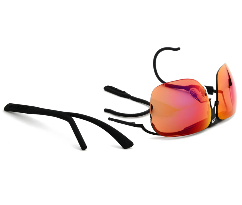In addition to the adjustable temple tips in the Fork and Cable Systems, the nose bridge is also adjustable to raise the front bar of the frame. The nose piece is a super comfortable high-performance silicone, one-piece saddle that grabs your nose for maximum grip and comfort.