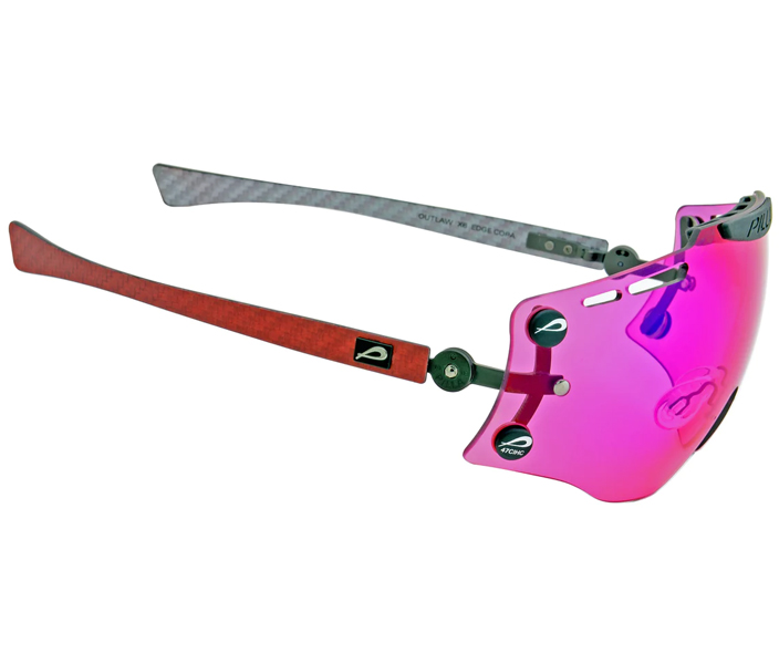 The Outlaw Top Gun provides a shooters with a visual experience unlike any other Pilla product. Our design mandate was to create a lens option that puts the shooter behind a mask to create a larger visual registration field using our exclusive Zeiss lens technology. The visual sight picture offers a color enhancing experience that calms the eye given there is no visual disruption in ambient light. The eye is able to use the technology in the Zeiss lens to the fullest given the availability of filter above and to the sides of your direct straight-line vision. The lens is a larger surface area so the shooter sees only filter when in the gun. The lens offers 25% more lens surface and more wrap coverage in the periphery of the shooters vision. The center of the lens design provides the shooter more lens to look through when in the gun given the integrated sweat bar has been raised above the eyebrow horizontal. The lens tapers to the temple sides to provide shooters wearing a hat full utility of the design. The visual picture is exceptional.