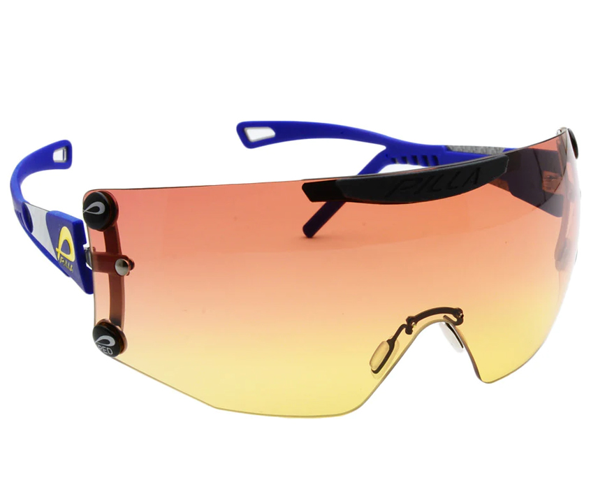 The Outlaw Top Gun provides a shooters with a visual experience unlike any other Pilla product. Our design mandate was to create a lens option that puts the shooter behind a mask to create a larger visual registration field using our exclusive Zeiss lens technology. The visual sight picture offers a color enhancing experience that calms the eye given there is no visual disruption in ambient light. The eye is able to use the technology in the Zeiss lens to the fullest given the availability of filter above and to the sides of your direct straight-line vision. The lens is a larger surface area so the shooter sees only filter when in the gun. The lens offers 25% more lens surface and more wrap coverage in the periphery of the shooters vision. The center of the lens design provides the shooter more lens to look through when in the gun given the integrated sweat bar has been raised above the eyebrow horizontal. The lens tapers to the temple sides to provide shooters wearing a hat full utility of the design. The visual picture is exceptional.
