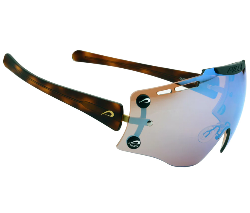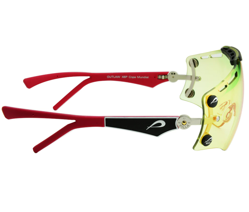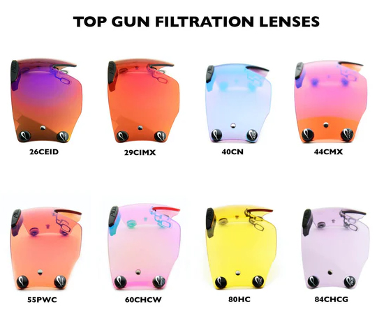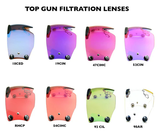 The Outlaw Top Gun provides a shooters with a visual experience unlike any other Pilla product. Our design mandate was to create a lens option that puts the shooter behind a mask to create a larger visual registration field using our exclusive Zeiss lens technology. The visual sight picture offers a color enhancing experience that calms the eye given there is no visual disruption in ambient light. The eye is able to use the technology in the Zeiss lens to the fullest given the availability of filter above and to the sides of your direct straight-line vision. The lens is a larger surface area so the shooter sees only filter when in the gun. The lens offers 25% more lens surface and more wrap coverage in the periphery of the shooters vision. The center of the lens design provides the shooter more lens to look through when in the gun given the integrated sweat bar has been raised above the eyebrow horizontal. The lens tapers to the temple sides to provide shooters wearing a hat full utility of the design. The visual picture is exceptional.